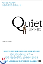 이 책은 2012년 ‘세계 지식인의 축제’ TED 콘퍼런스 개막식의 대미를 장식하며 전 세계 네티즌의 찬사를 받은 강의를 정리했다. 책은 세상은 외향적인 사람을 선호하지만 정작 세상을 바꾸는 건 내성적인 사람이라고 주장한다. 간디, 아인슈타인, 고흐, 그리고 애플의 공동창립자인 스티브 워즈니악 같은 조용하고 이지적인 사람들의 어떤 특성들이 남다른 성과를 내도록 하고 위대한 통찰과 창의성을 이끌어내는지 설명한다.