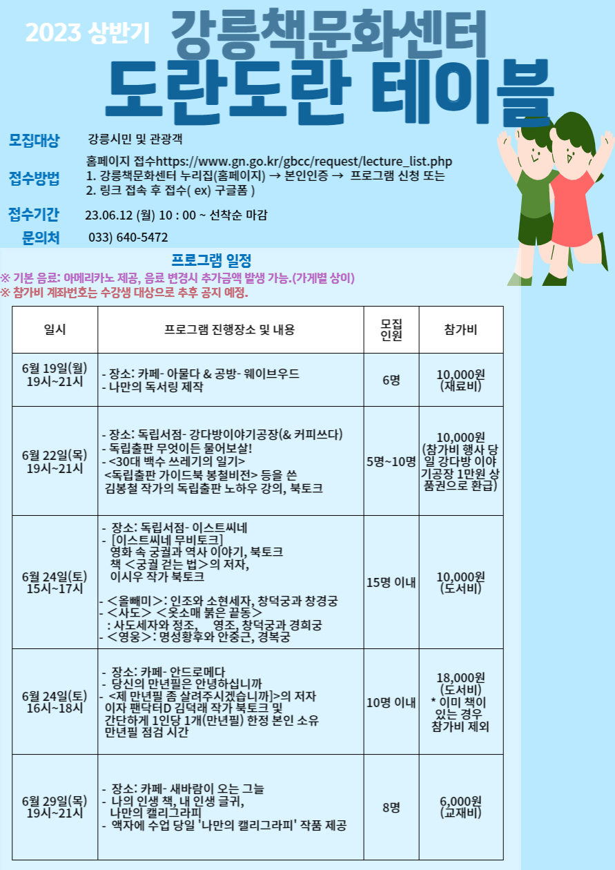 [강릉책문화센터] 2023년 상반기 도란도란테이블 운영 및 신청 안내