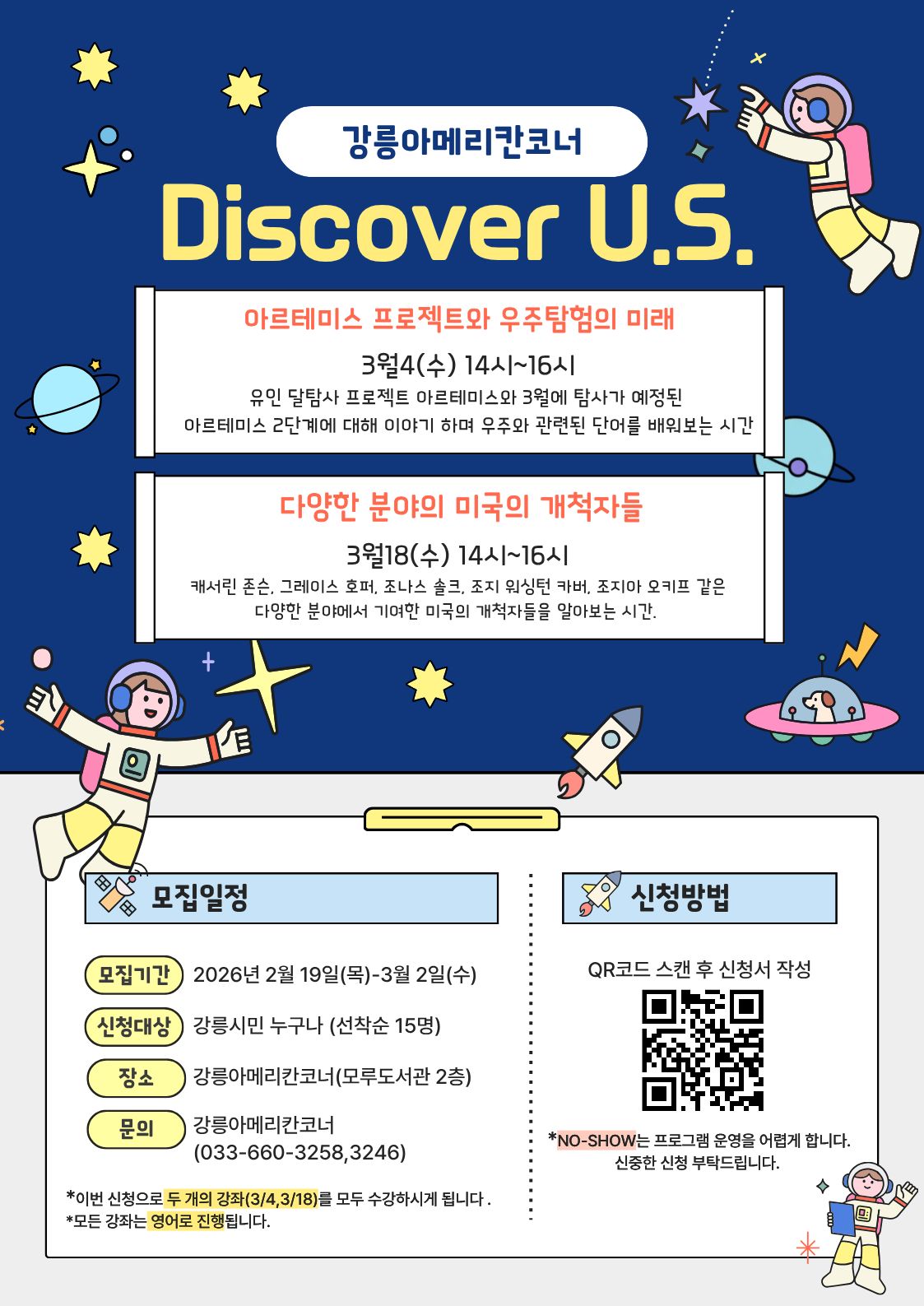 [강릉아메리칸코너]2026년 3월 Discover U.S. 참가자모집합니다!