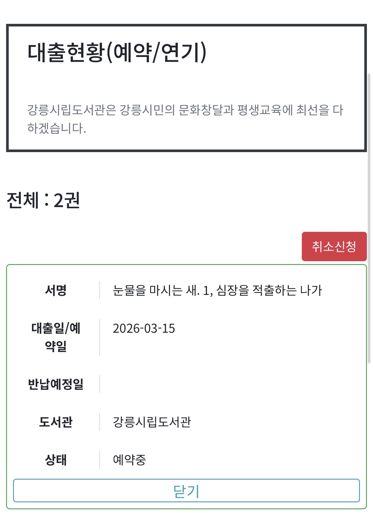 현재 대출 중인 도서 대기자입니다